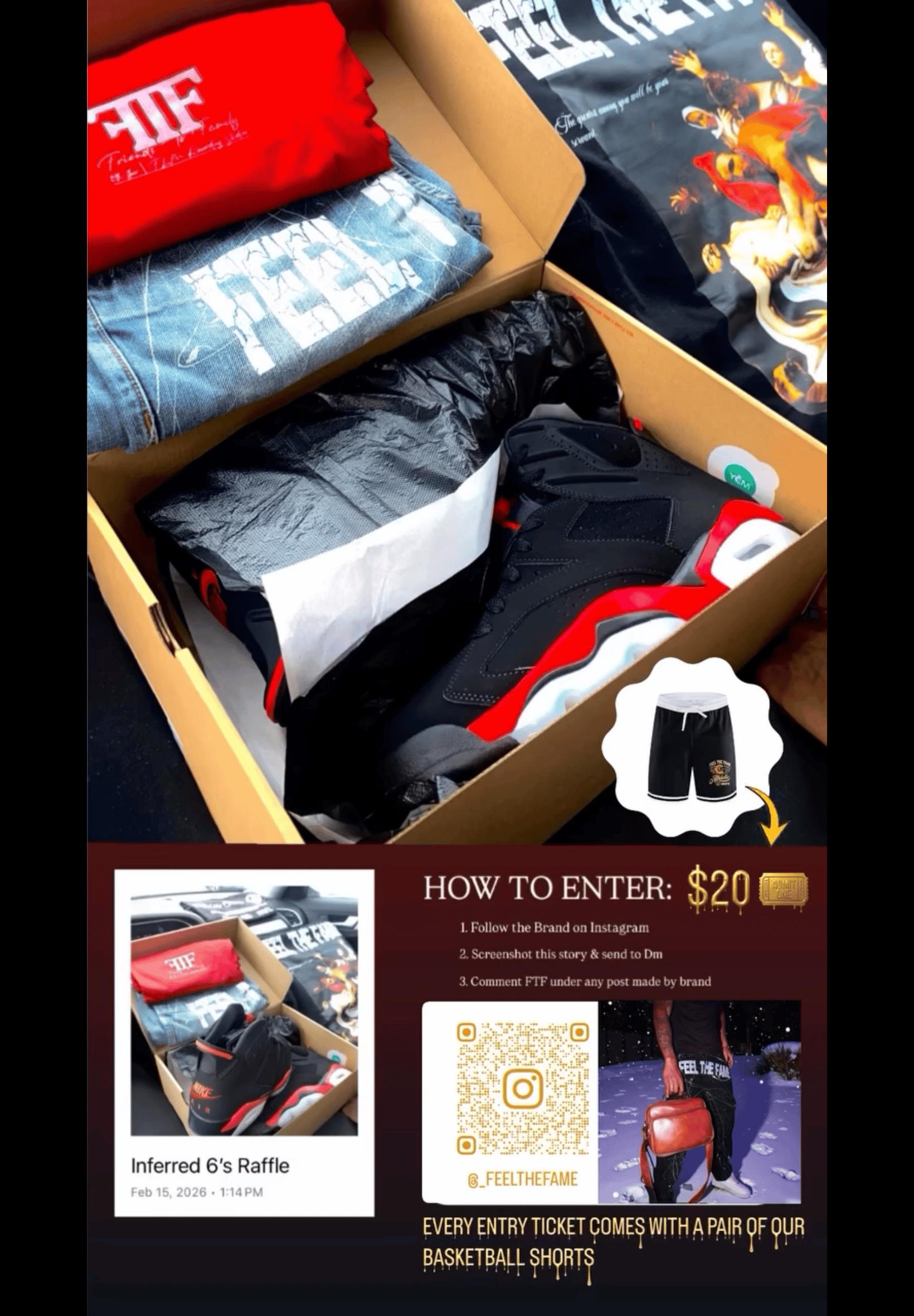Raffle tickets come with a complementary FEEL THE FAME tournament basketball shorts